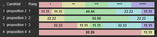 Dans ce cas il n’est plus vraiment utile d’utiliser un vote blanc. D’autant plus que le résultat du scrutin ne donne pas un résultat unique, un vainqueur, mais une priorisation des objectifs sociaux.
